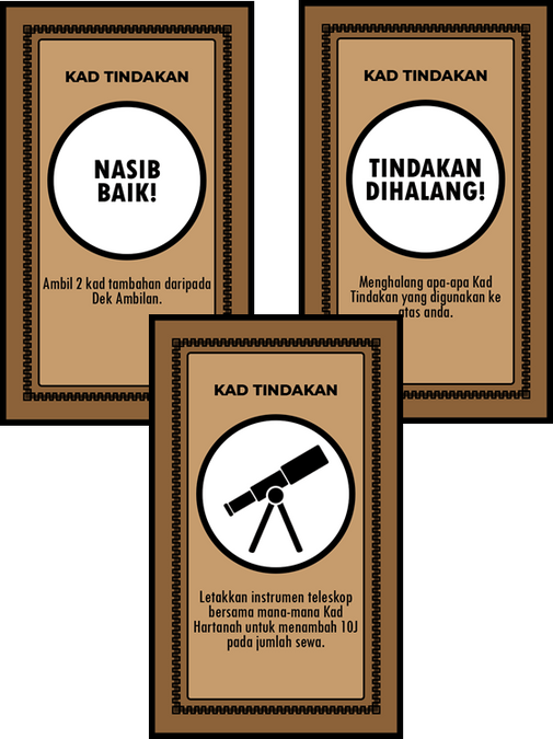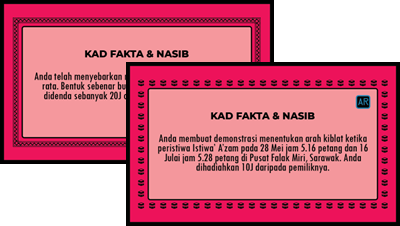 Mempunyai fakta berkaitan falak dan menunjukkan arahan yang perlu dilakukan oleh pemain. Lakukan segera arahan yang diberikan pada kad. Jika terdapat tanda AR pada kad, boleh imbas kad AR melalui Aplikasi Permainan Kad AL-KAHF untuk mendapat maklumat.